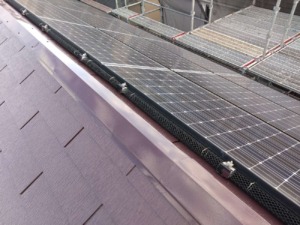 パネル復旧後+【鳥よけ対策】として樹脂製のネット(雨樋などに枯葉が入らないように使用する部材)を取り付けました。