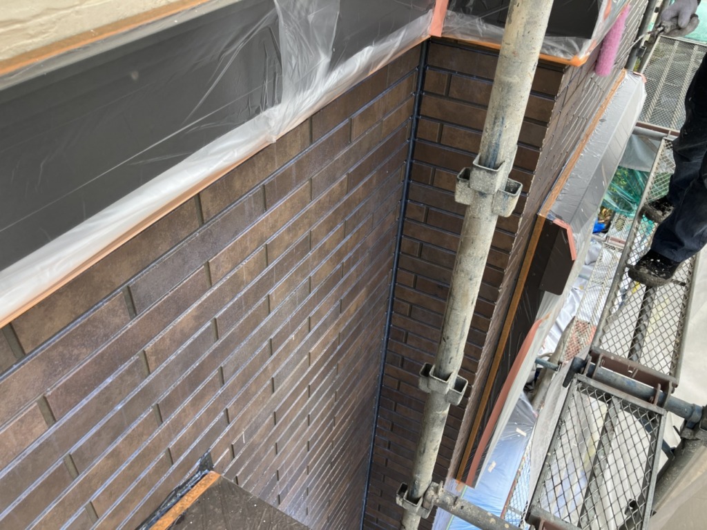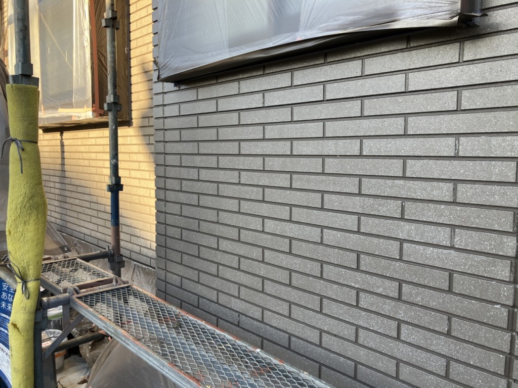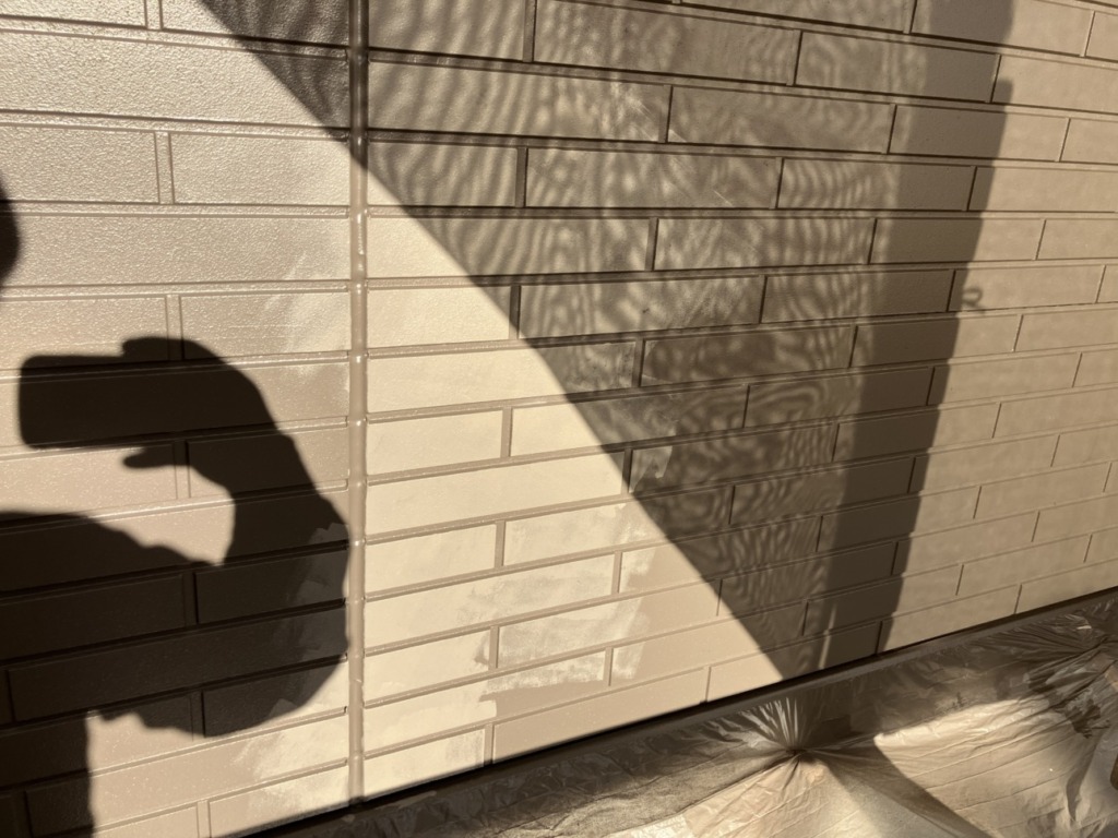 続いて目地色(2回塗り)を塗装します。 2回目、3回目の塗り