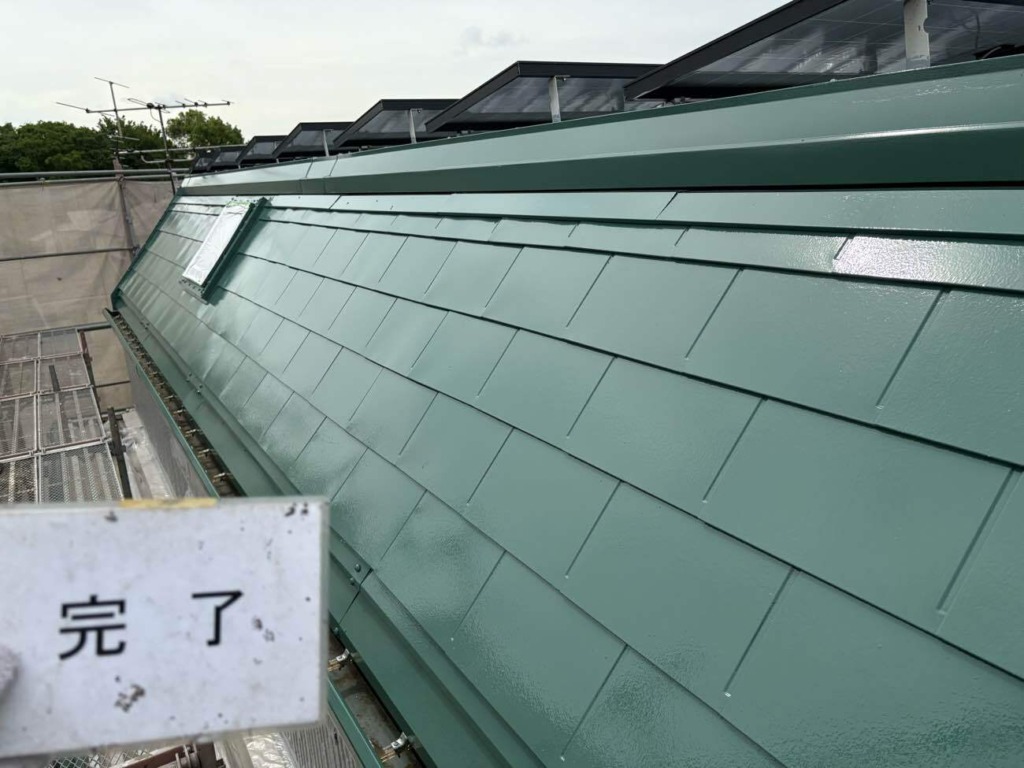 交通量の多い道路沿いなので屋根の塗膜の剥がれは目立っていたので綺麗にできてよかったです。屋根は金属のため遮熱塗料でご提案させていただいたので今後の暑い夏もこれで快適です!