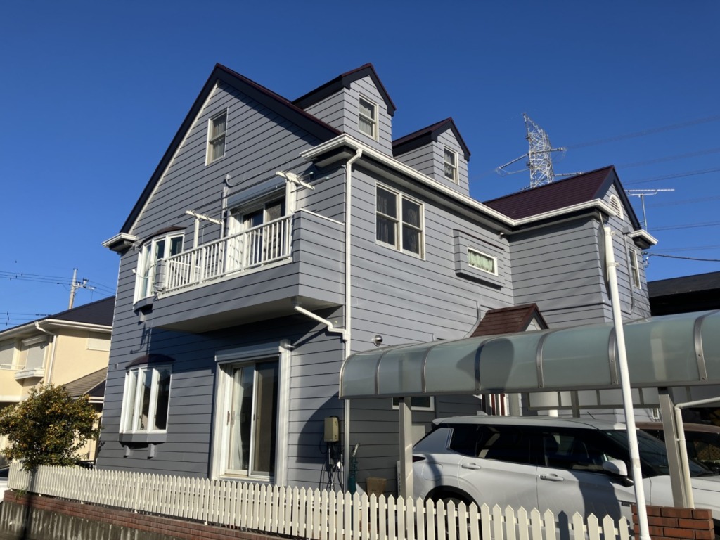 ブルーグレーで魅せる、洋風住宅の外壁塗装/千葉県香取市外壁・屋根塗装リフォーム