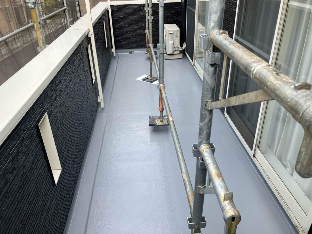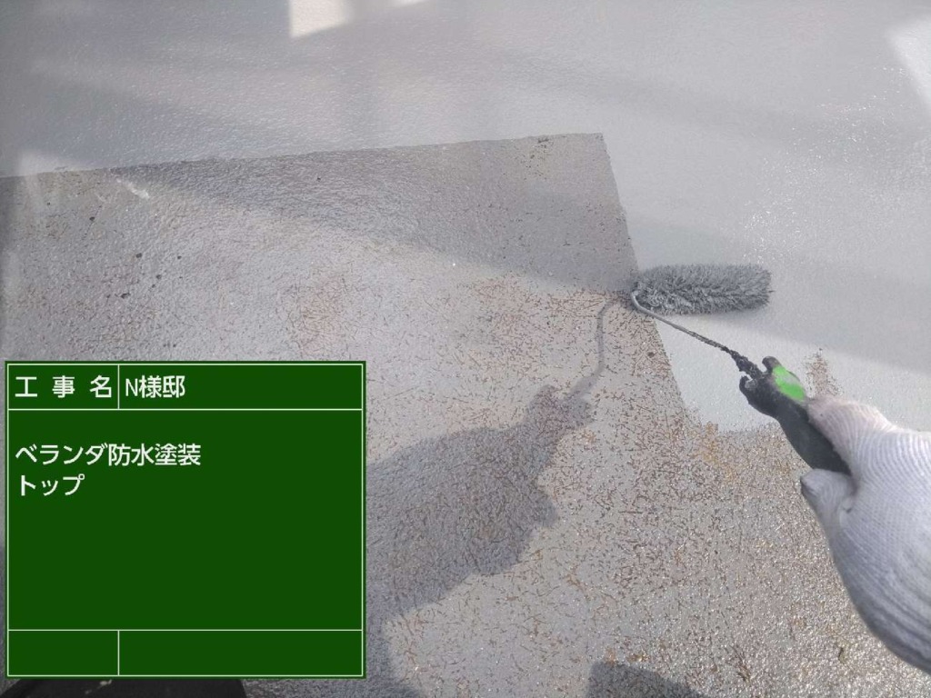 トップコート仕上げ 保護塗膜のトップコートを塗り完了です