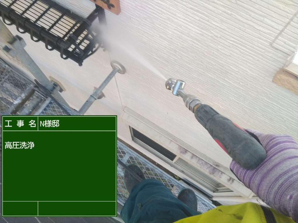 外壁高圧洗浄 外壁や付帯部のホコリや汚れ、藻やカビなどを洗い流します