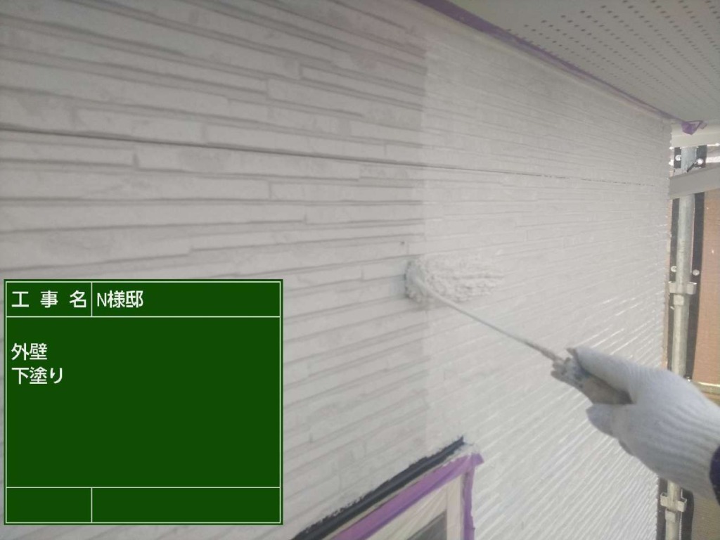 外壁下塗り 外壁の下塗は日本ペイントのパーフェクトサーフです