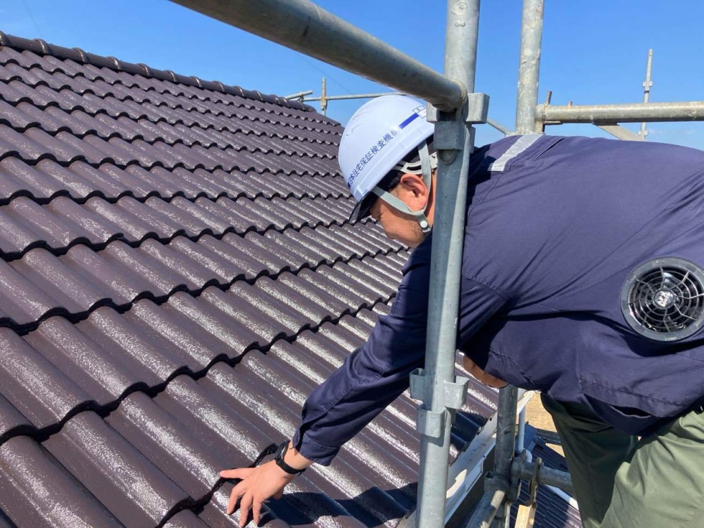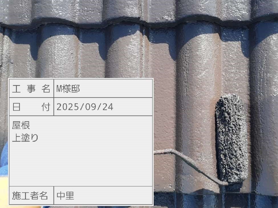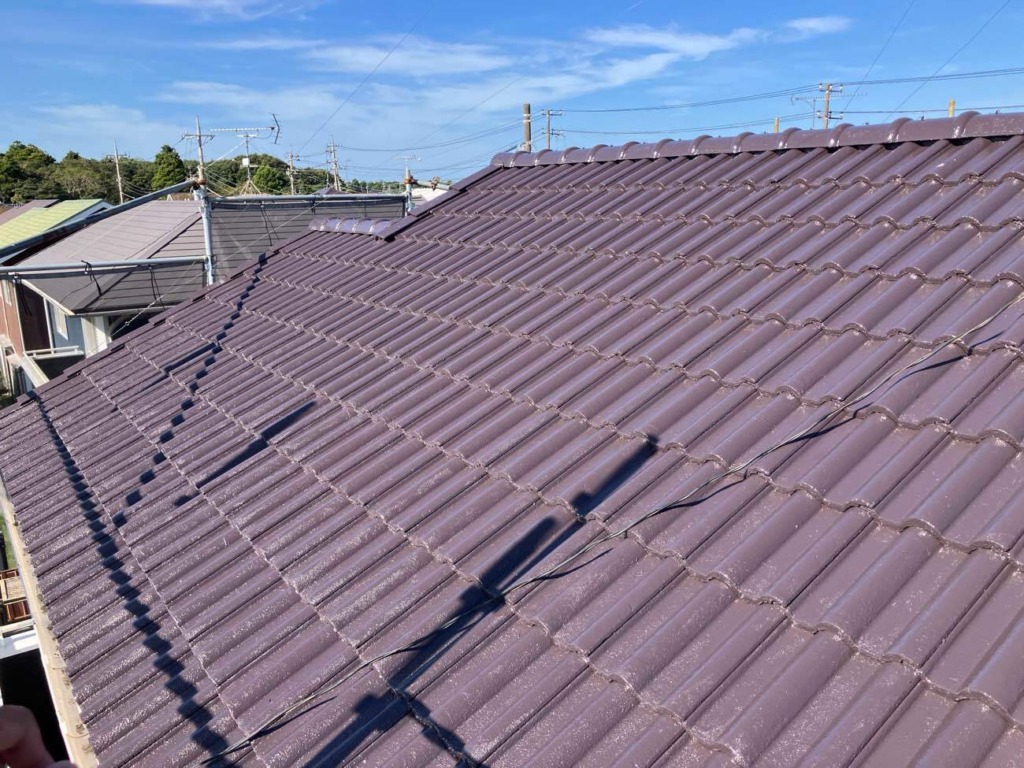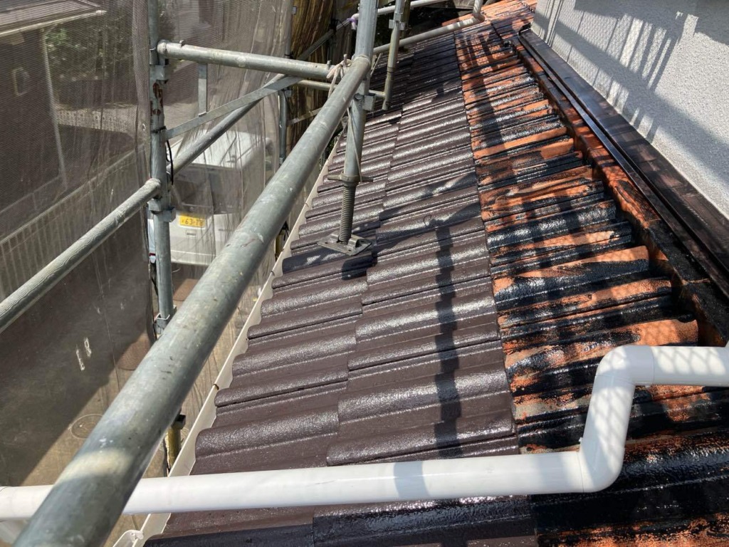 屋根上塗り 上塗りは中塗りと同じ無機塗料をもう一度塗装します
