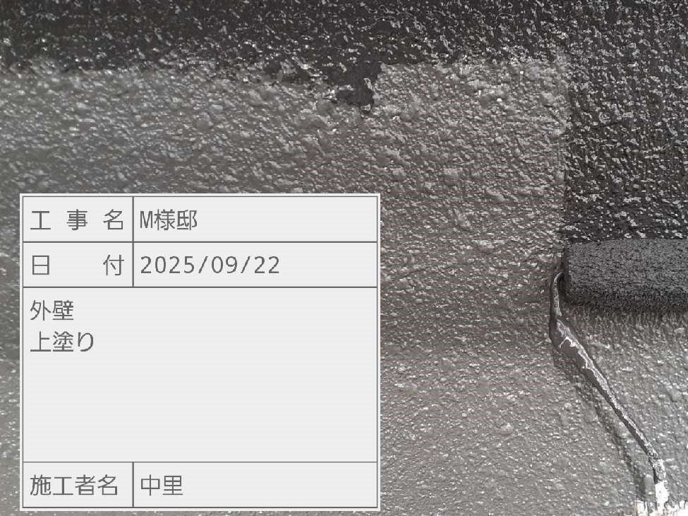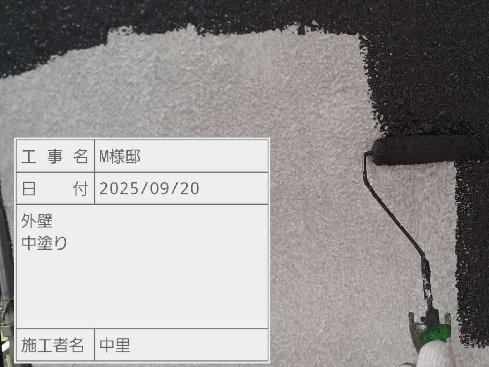 外壁中塗り 中塗りは無機塗料のグランセラトップ1液水性です