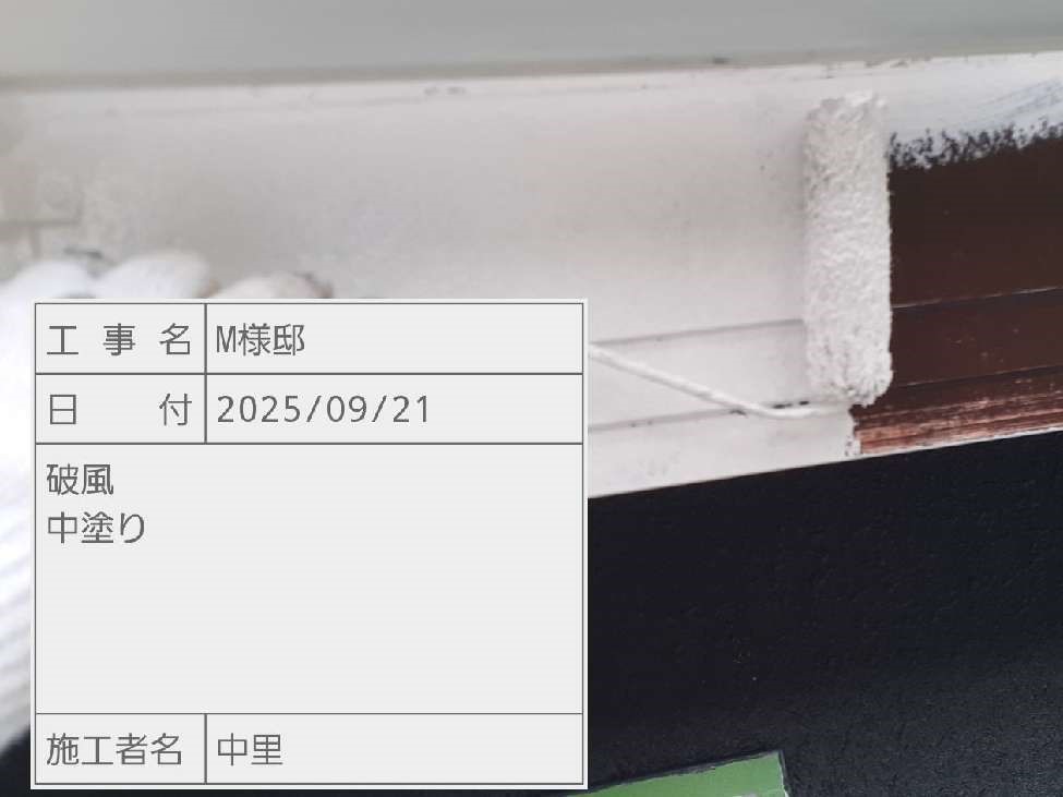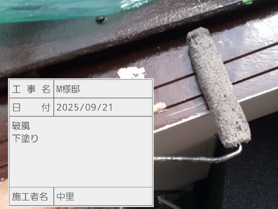付帯部塗装 破風下塗り 窯業系の破風板は外壁材と同じ工程です