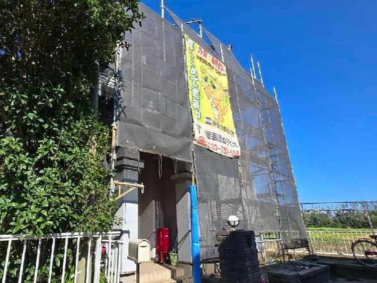 仮設工事 安全に塗装作業が出来るように足場を架けます
