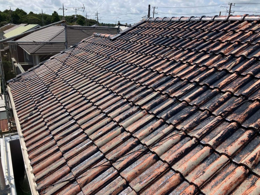 屋根高圧洗浄 塗装前に屋根の苔や汚れを落とします