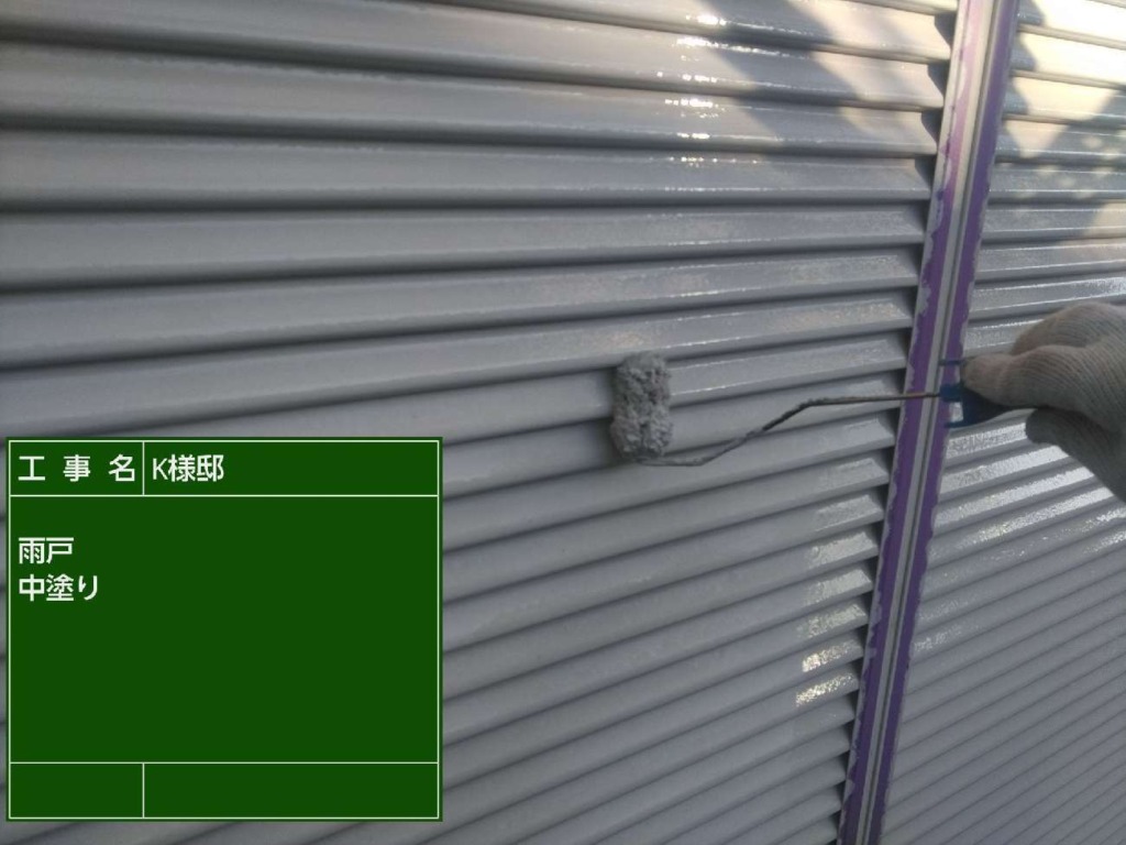 雨戸中塗り 中塗りはラジカル制御型塗料のファインパーフェクトトップで塗装します