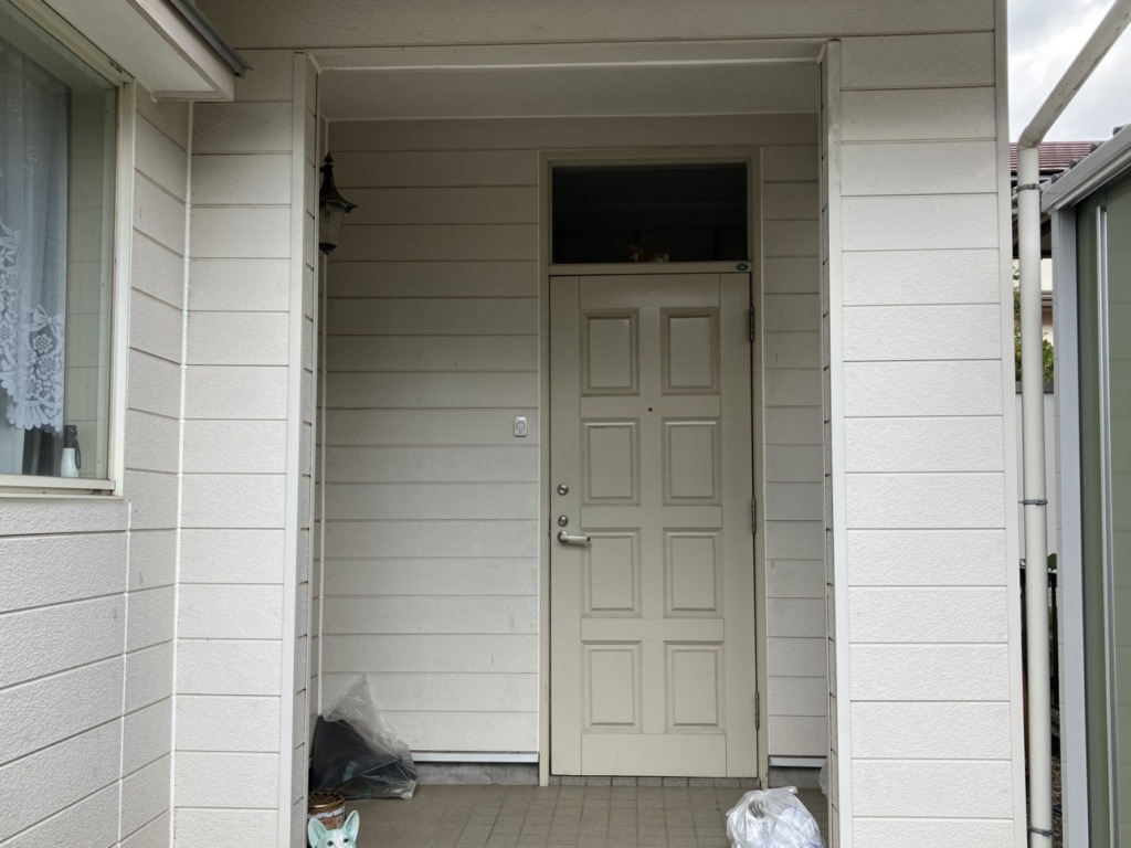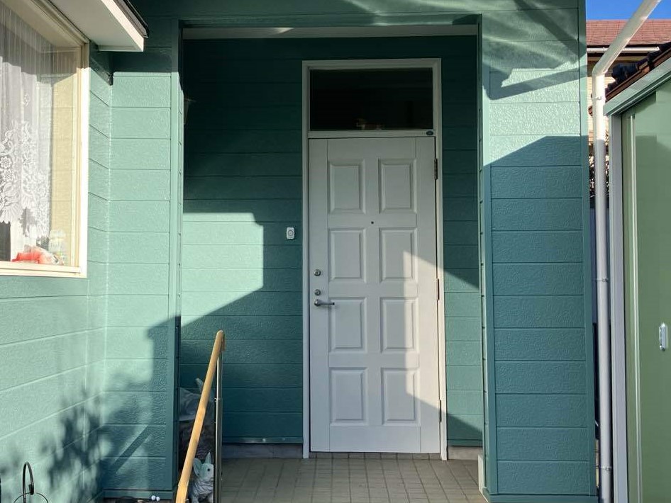 玄関廻り塗装後 木製の玄関ドアも塗装させて頂きキレイに仕上がりました