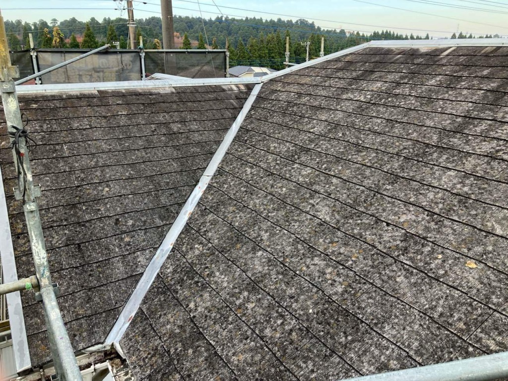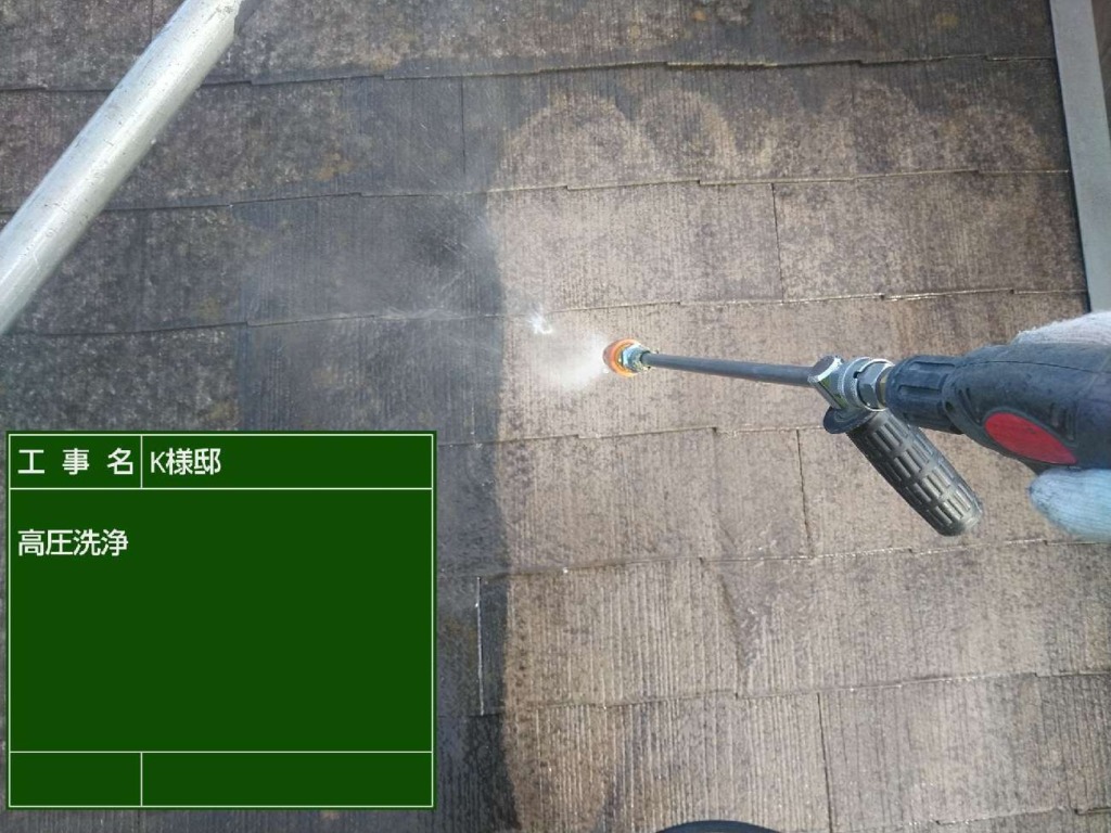屋根高圧洗浄 塗装前に屋根の苔や汚れを落とします