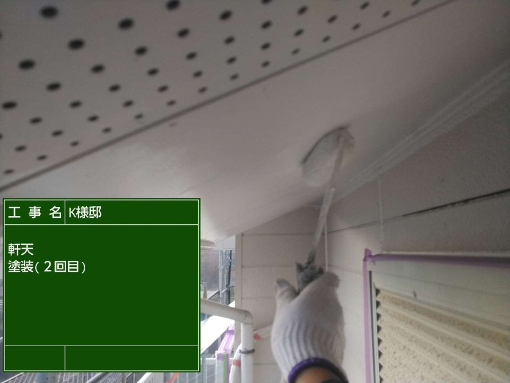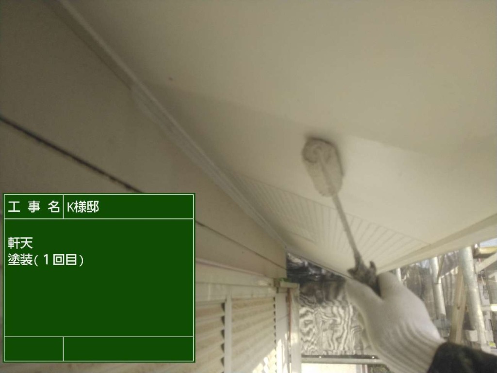 軒天中塗り 塗装は一般的に上から下に塗っていきます 養生が終わったら軒天塗装です