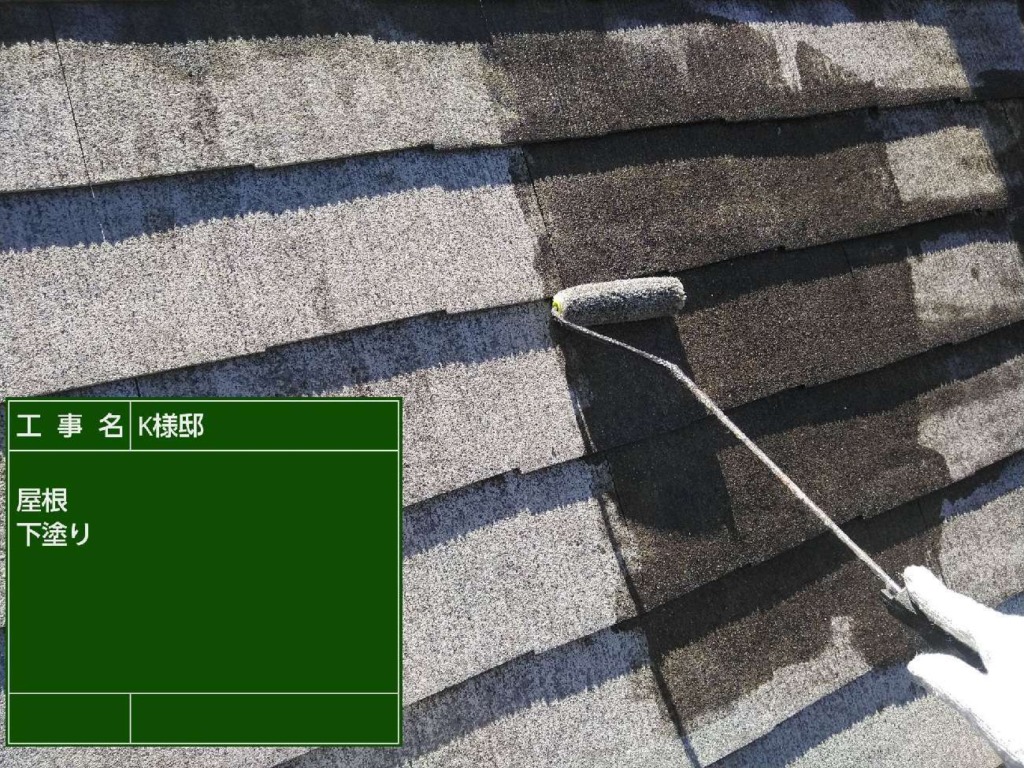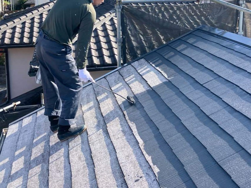 屋根下塗り 中塗り塗料の密着を高めるシーラーを塗ります