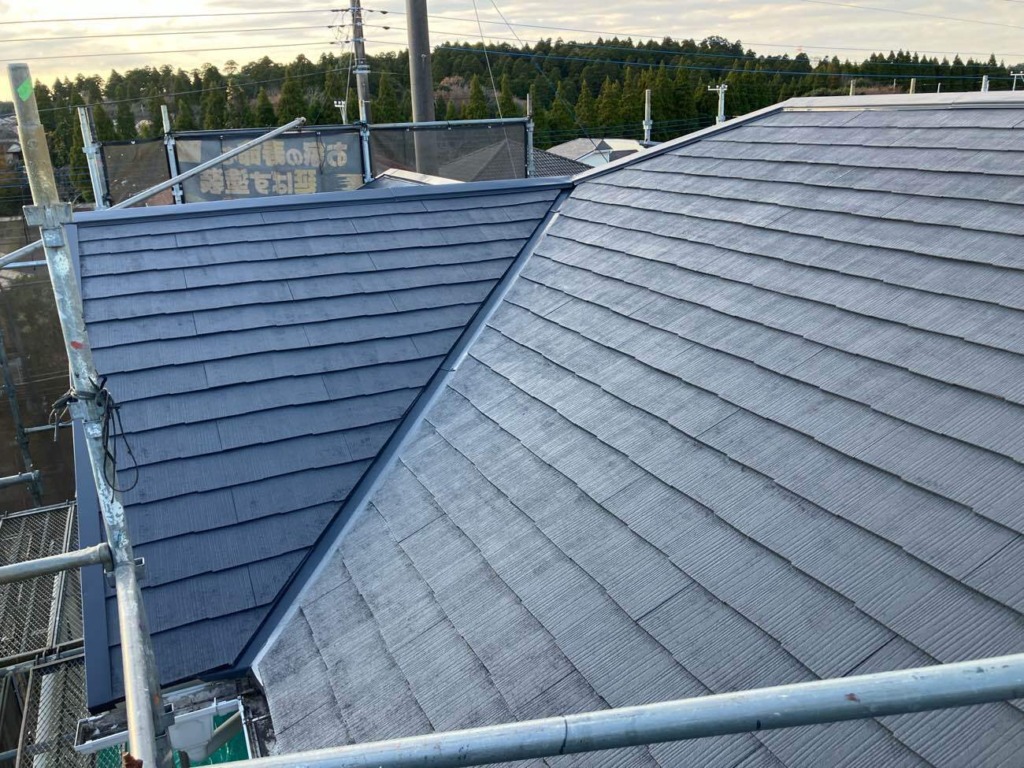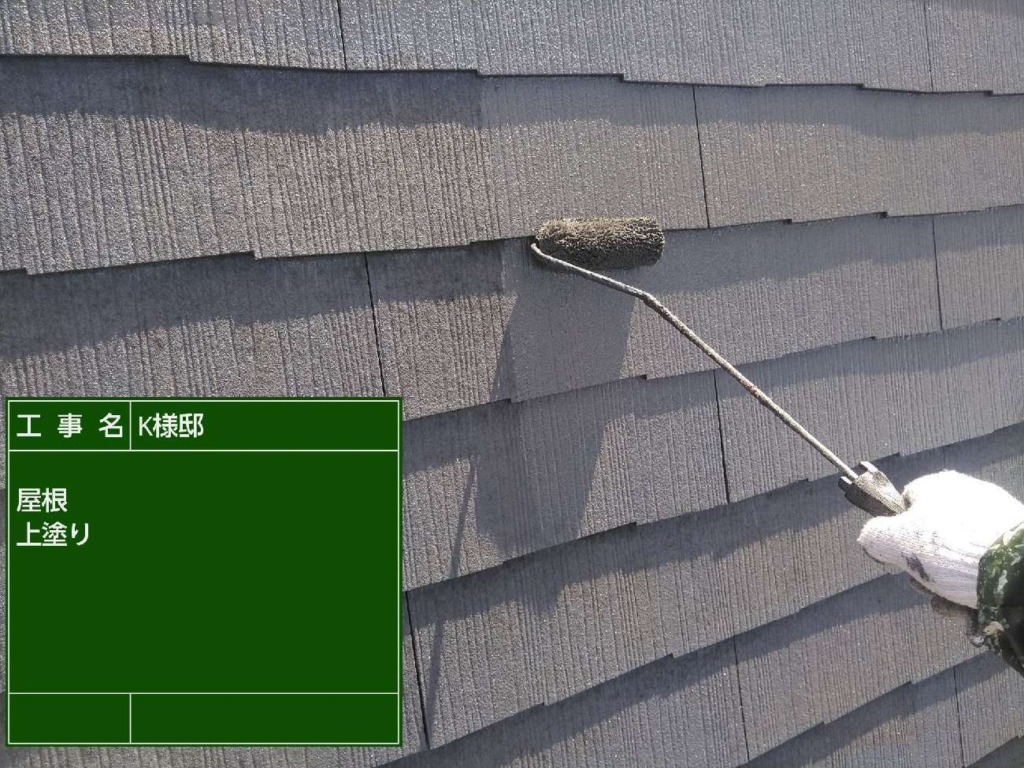 屋根上塗り ファインパーフェクトベストをもう1回塗装して屋根塗装は完了です