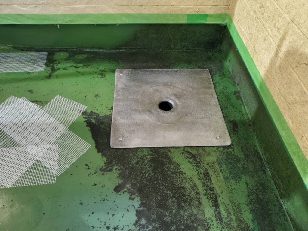 下地処理・プライマー塗布・排水口に鉛ドレンを取付。